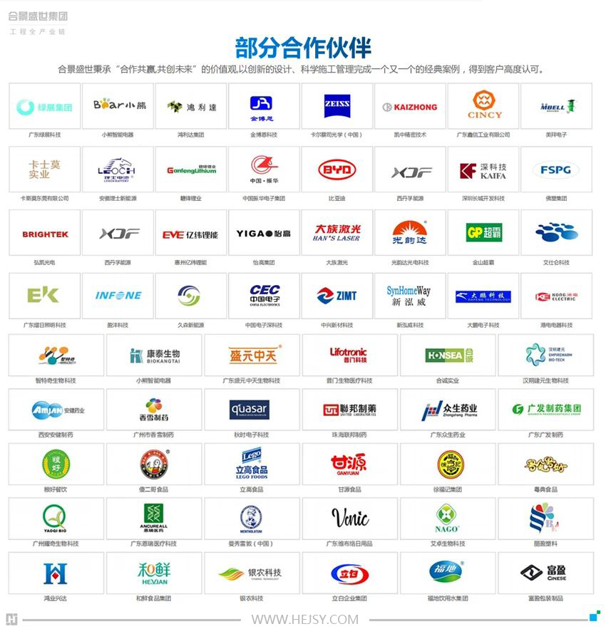 合景智慧建設憑借在智能制造建設領域二十年來無數(shù)案例經(jīng)驗和擁有國家注冊一級、二級50余名技術人才的優(yōu)勢,以遍布全國的各領域廠房建設專業(yè)化服務、一體化解決方案實力,大力推進工業(yè)類廠房工程總承包。在此之前,公司已在全國承包建設眾多優(yōu)質(zhì)工程,服務過的行業(yè)百強企業(yè)、獨角獸企業(yè)廠房建設數(shù)十家。