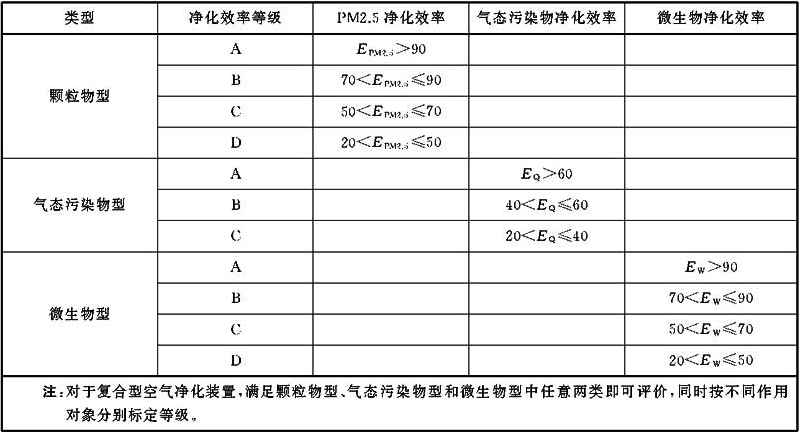 空氣凈化裝置按作用對象分類,可分為顆粒物型、氣態(tài)污染物型和微生物型,代號分別為KL、QT、WS。