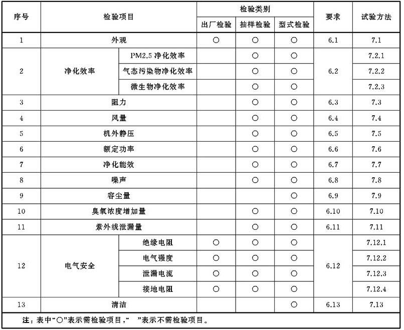 空氣凈化裝置的檢驗分為出廠檢驗、抽樣檢驗和型式檢驗。