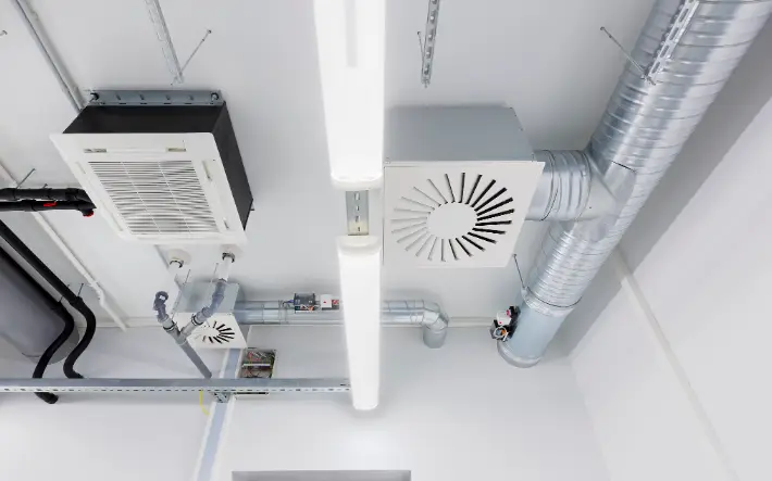 許多項目都傾向于選擇第三種方式。但需要注意的是,這種布局方式會減少下方上技術夾層(靜壓箱)的高度。為了確??諝饬鲃拥姆€(wěn)定性和日后的FFU日常維護,必須保持一定的凈高。根據合潔科技電子潔凈工程師的建議,最小的凈高應為1.5米。