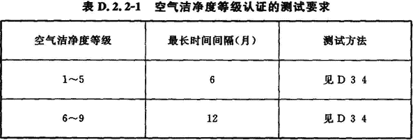 D.2.2 空氣潔凈度等級、靜壓差、風(fēng)速或風(fēng)量的認(rèn)證測試的最長時間間隔應(yīng)符合表D.2.2—1和表D.2.2—2的規(guī)定。